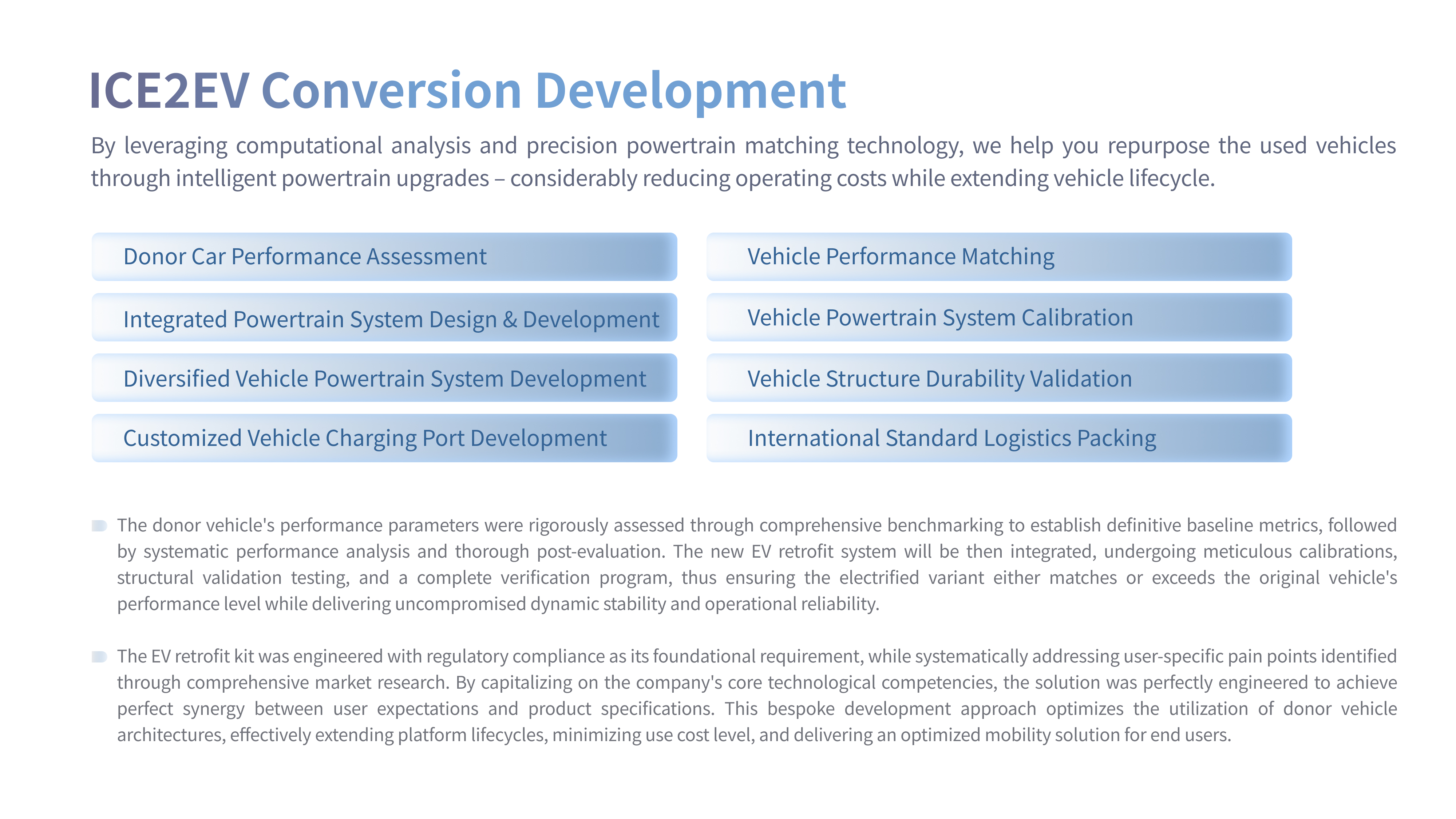 By leveraging computational analysis and precision powertrain matching technology, we help you repurpose the used vehicles through intelligent powertrain upgrades – considerably reducing operating costs while extending vehicle lifecycle.