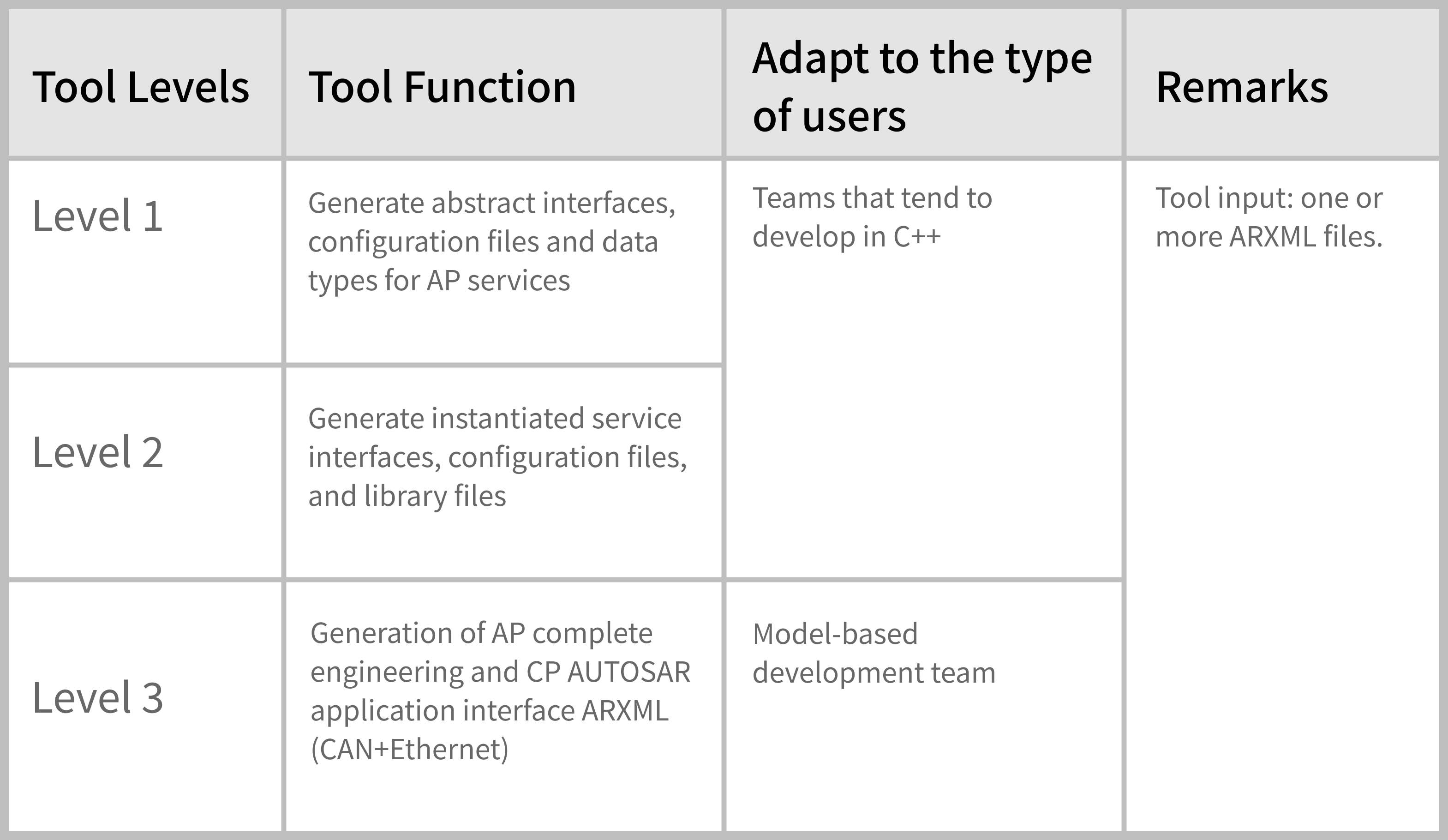 -Software framework tool, an automated code generation tool based on AP AUTOSAR.