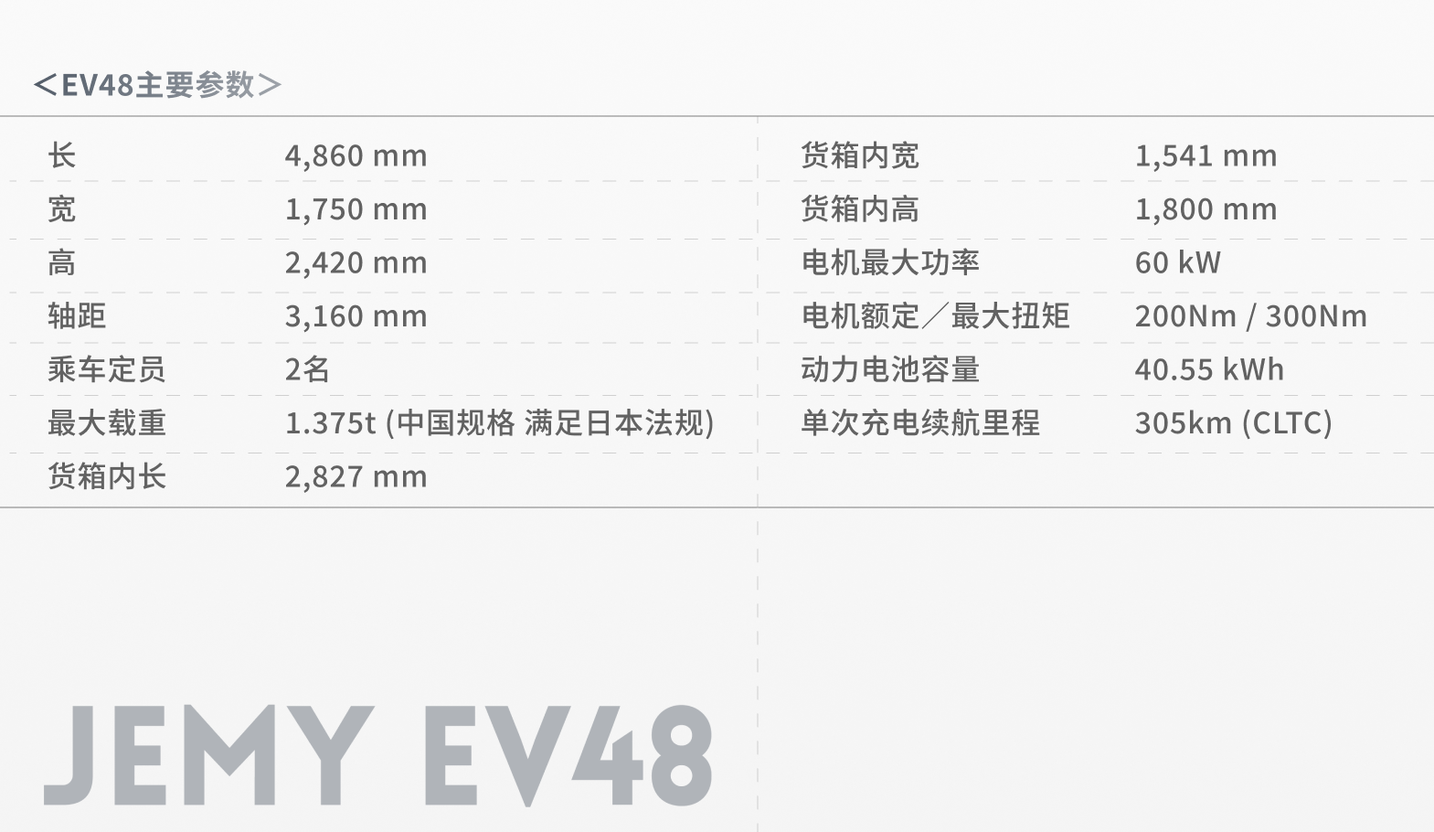 The EV48 is an electric logistics van that has been in mass production in spring 2023 by JENHOO Auto, a Chinese start-up company. This van is optimized to meet the unique needs of Japan, and YAMATO?INDUSTRY plans to import and sell it in Japan as the Car No. 1 of JEMY brand.