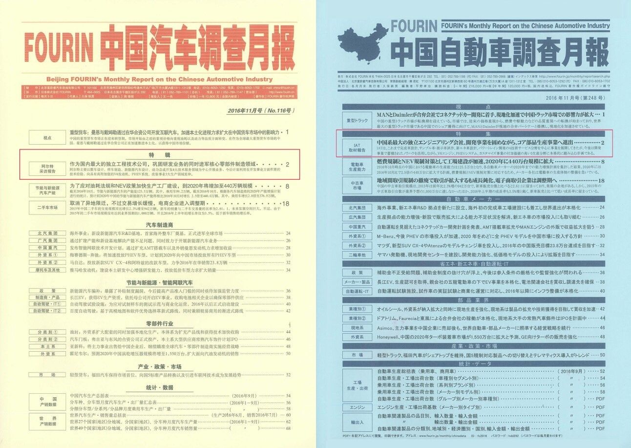 2016年9月14日,阿爾特總經(jīng)理張立強(qiáng)接受了日本FOURIN公司《中國汽車調(diào)查月報(bào)》雜志專訪,此次專訪主要圍繞阿爾特在鞏固研發(fā)領(lǐng)域業(yè)務(wù)的同時(shí)進(jìn)軍核心零部件制造領(lǐng)域的戰(zhàn)略計(jì)劃進(jìn)行了介紹。