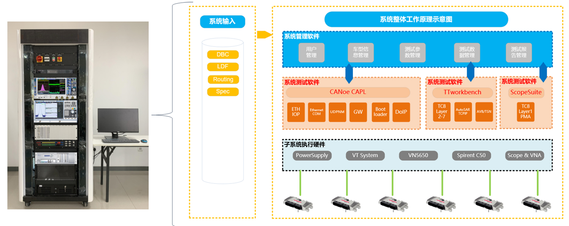 總線&診斷&以太網(wǎng)HIL測試系統(tǒng)總線測試系統(tǒng)覆蓋CANFD/CAN通信、LIN主從節(jié)點通信、網(wǎng)關路由、網(wǎng)絡管理-OSEK /AUTOSAR(CAN/CANFD)、J1939傳輸協(xié)議等自動化測試。主要分為網(wǎng)絡診斷及刷寫自動化測試子系統(tǒng)與以太網(wǎng)測試兩大板塊。