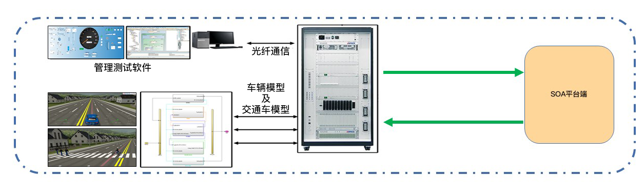 SOA 仿真測試系統(tǒng)與SOA平臺端握手鏈接,通過道路綜合環(huán)境仿真,如城市路網(wǎng)環(huán)境、高速路網(wǎng)環(huán)境等可以對SOA平臺系統(tǒng)進行綜合性測試驗證,確保SOA平臺的正確性、穩(wěn)定性、可靠性。對SOA場景功能APP進行整體動態(tài)測試驗證,優(yōu)化功能的體驗感,推進APP的快速研發(fā)上線。SOA仿真測試系統(tǒng)能夠實現(xiàn)紅綠燈場景仿真、道路標牌仿真、天氣場景仿真、目標車輛信息仿真、行人信息仿真、車道信息仿真、應急車輛信息仿真、主車動力學仿真及道路施工信息仿真等。