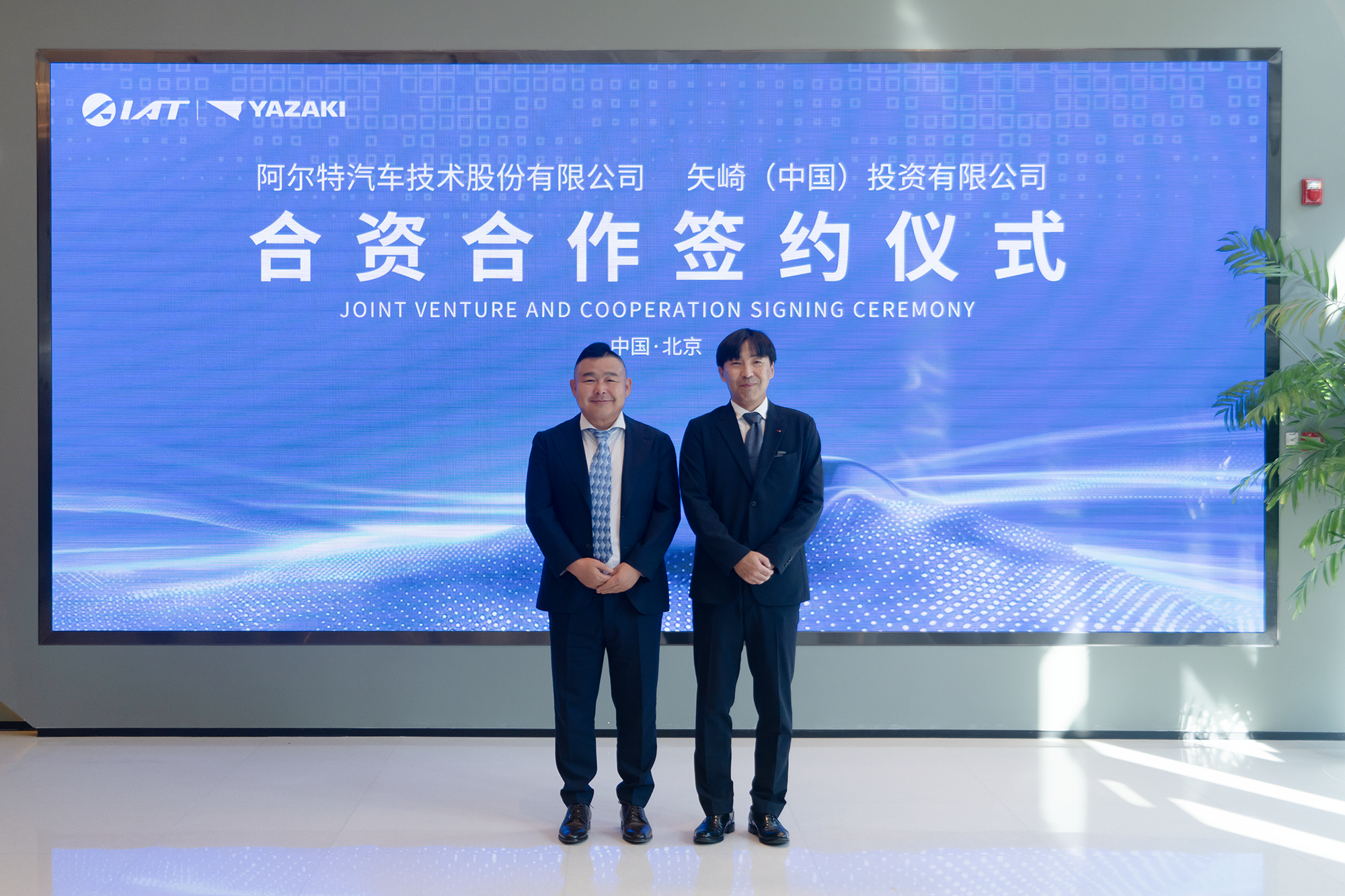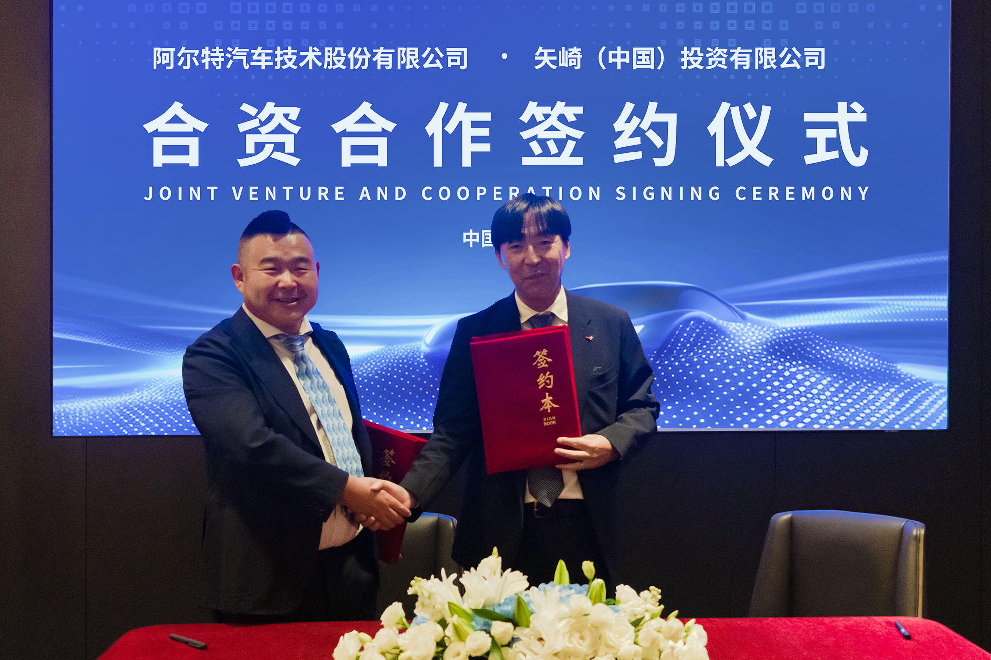 圖:阿爾特汽車董事長宣奇武(左)和矢崎(中國)董事長増井章文(右)簽約儀式合影